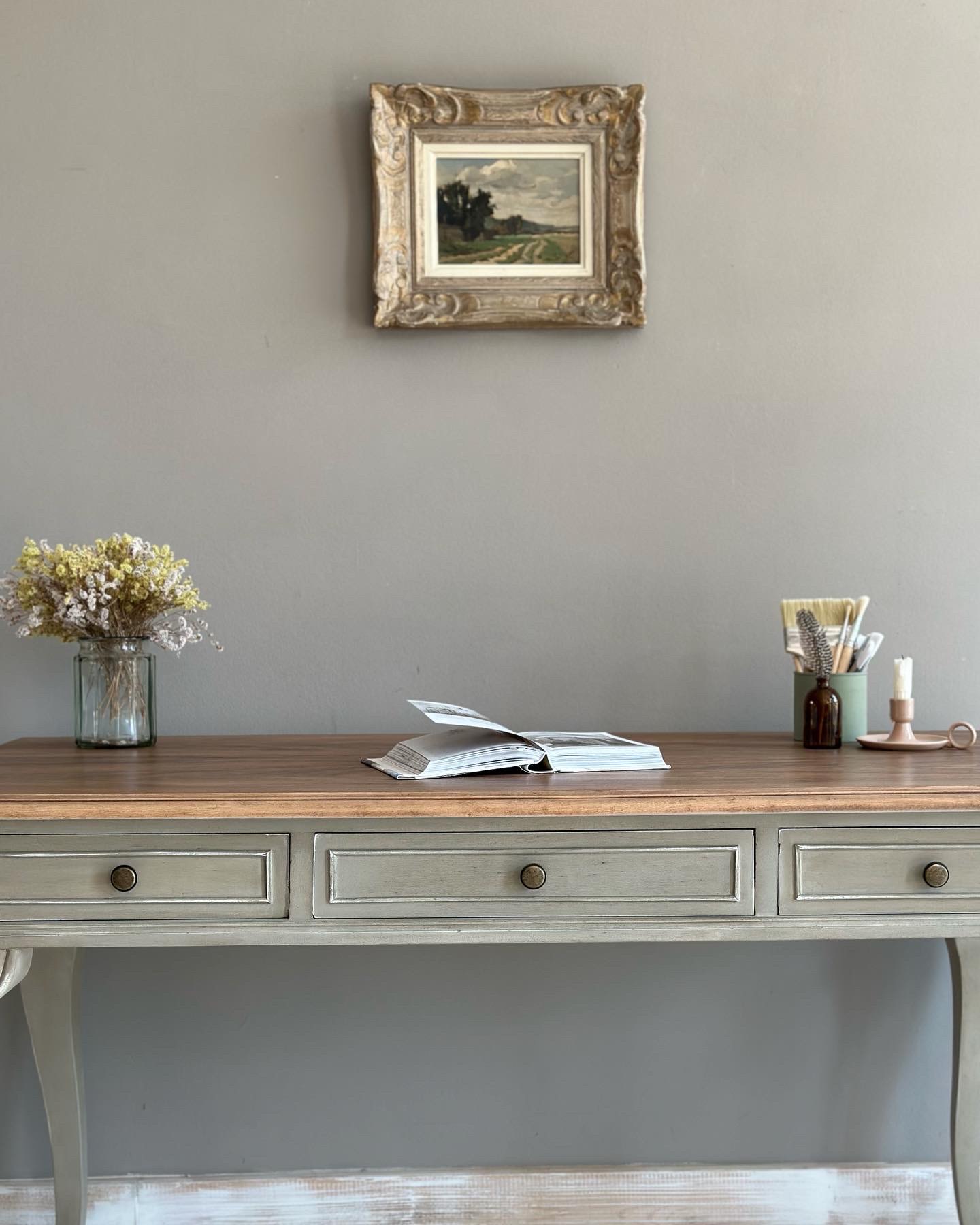 Lo mires por donde lo mires este escritorio es mágia. De madera maciza de nogal, con un sobre con hechizante vetado que dan ganas de acariciar…