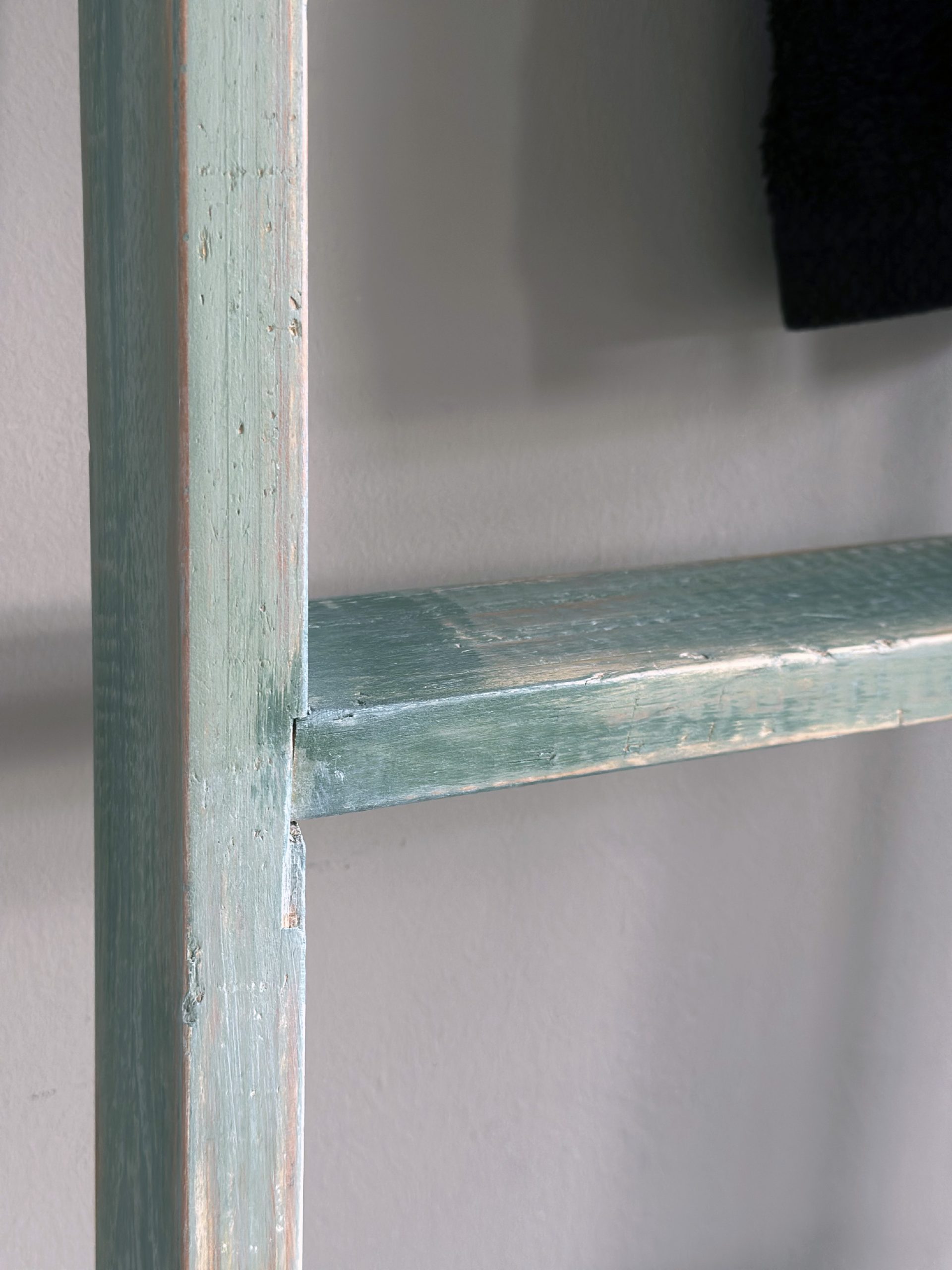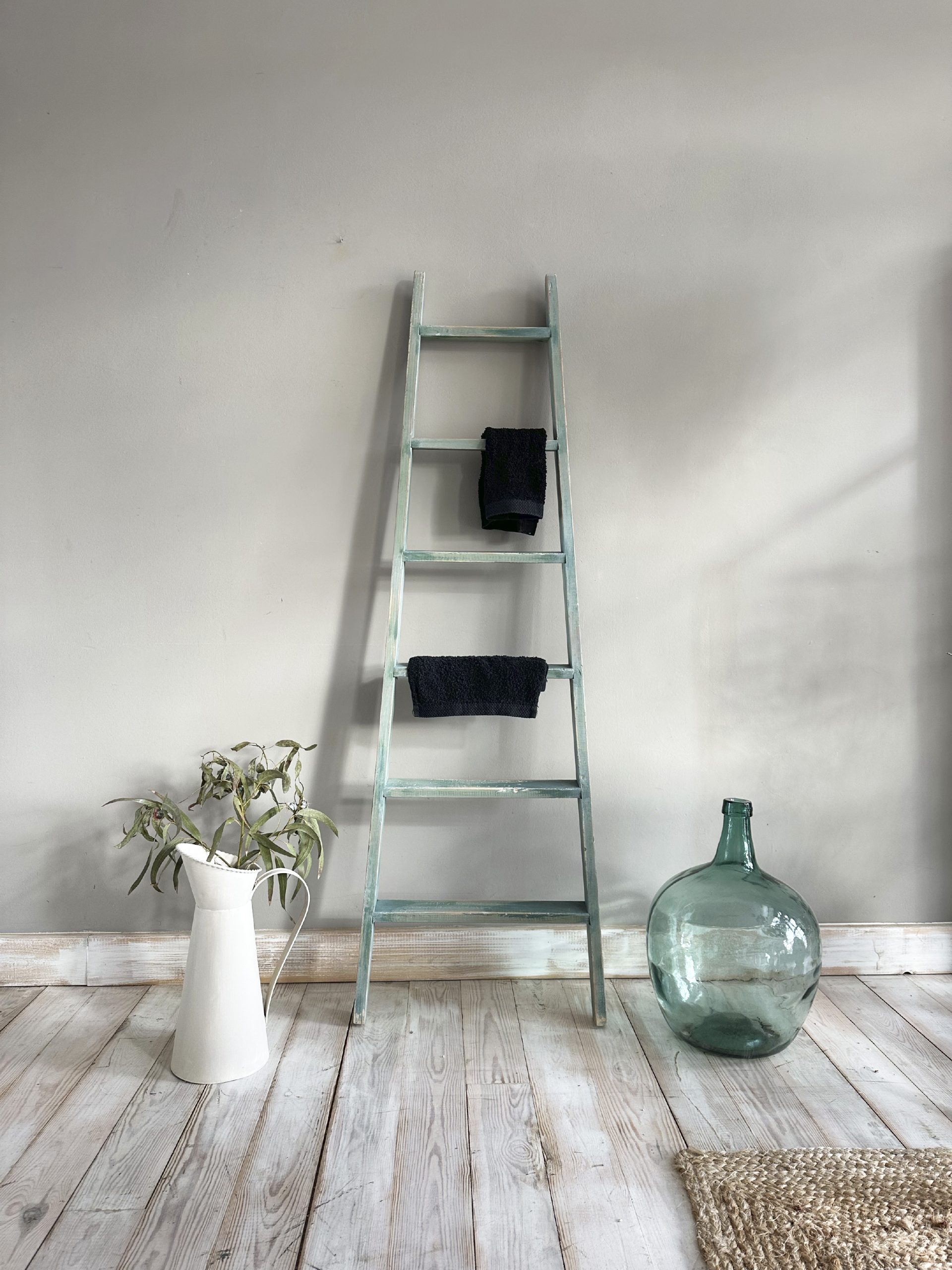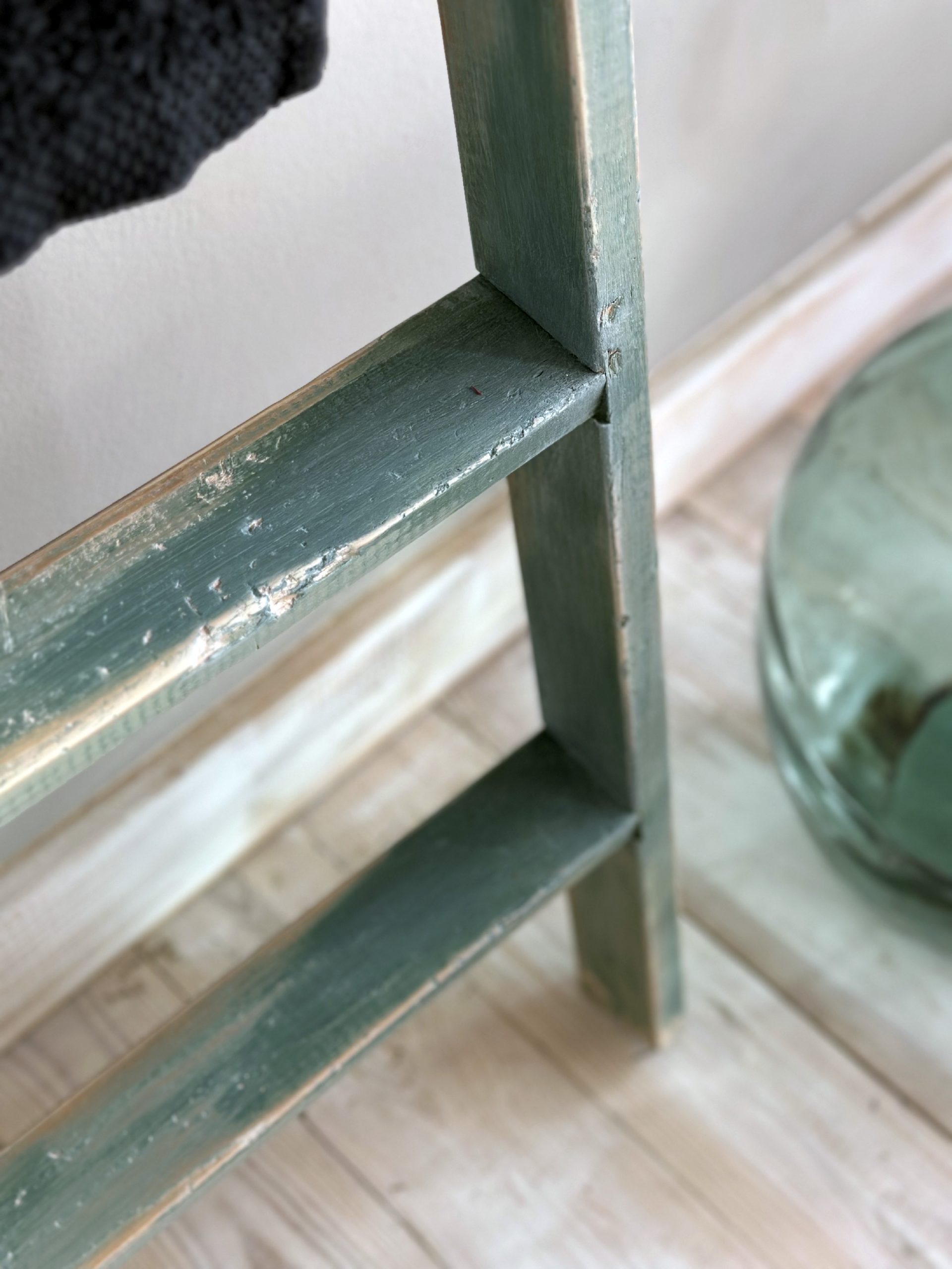 Esta escalera decapada en distintos tonos de verde , viste tu estancia en un aire natural. Consigue ser una pieza única, rústica y darle ese punto «green».